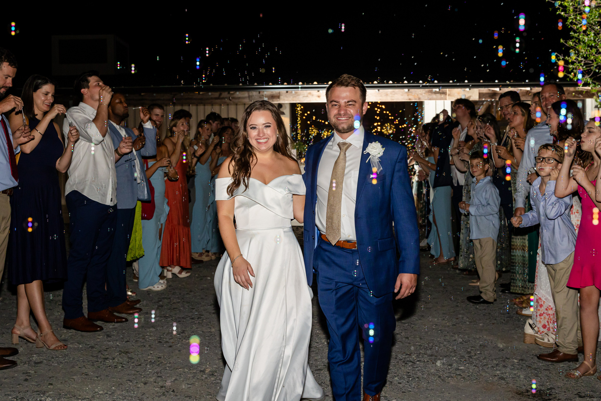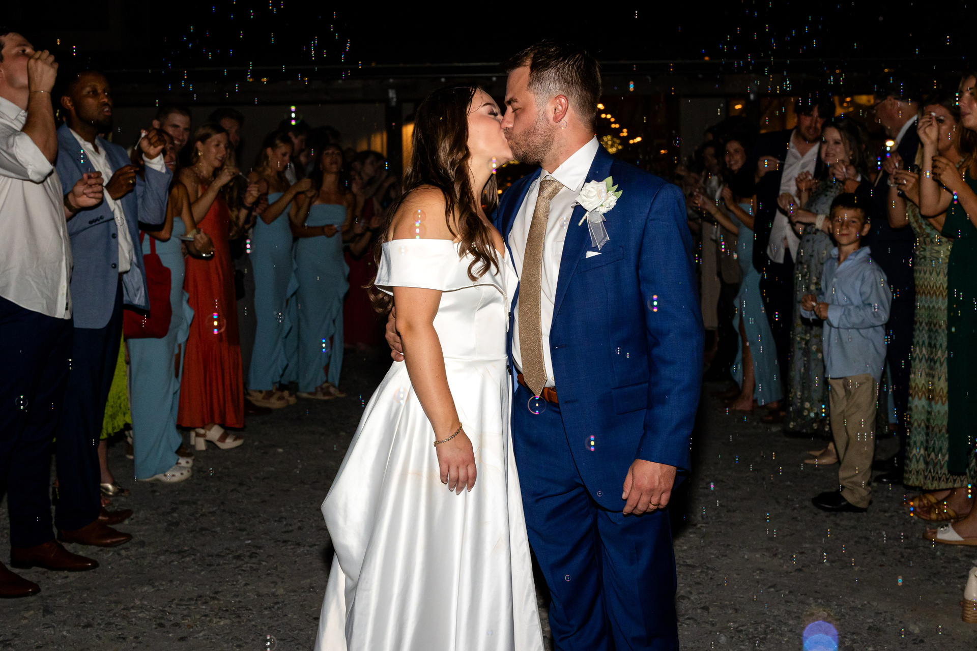 DJ Tim from Kestrel Studio kept the energy high all night. His thoughtful music selection brought everyone to the dance floor. The dance floor stayed packed from the first song to the grand exit. Their cake from Ingles was simple but perfect, matching their timeless navy and white color scheme.